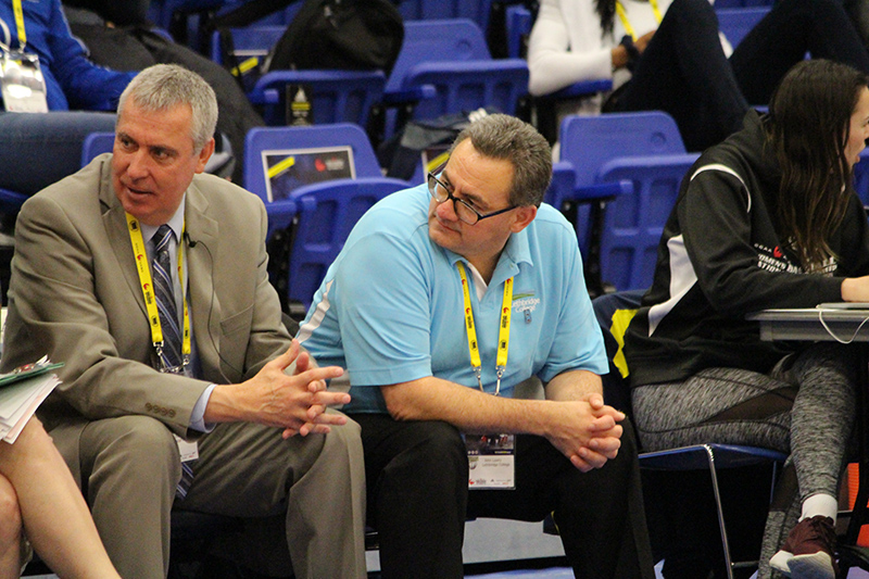 Jayden Egharevba (left) and Lazlo Lorenzo (right) share a handshake after the Horns vs Kodiaks…