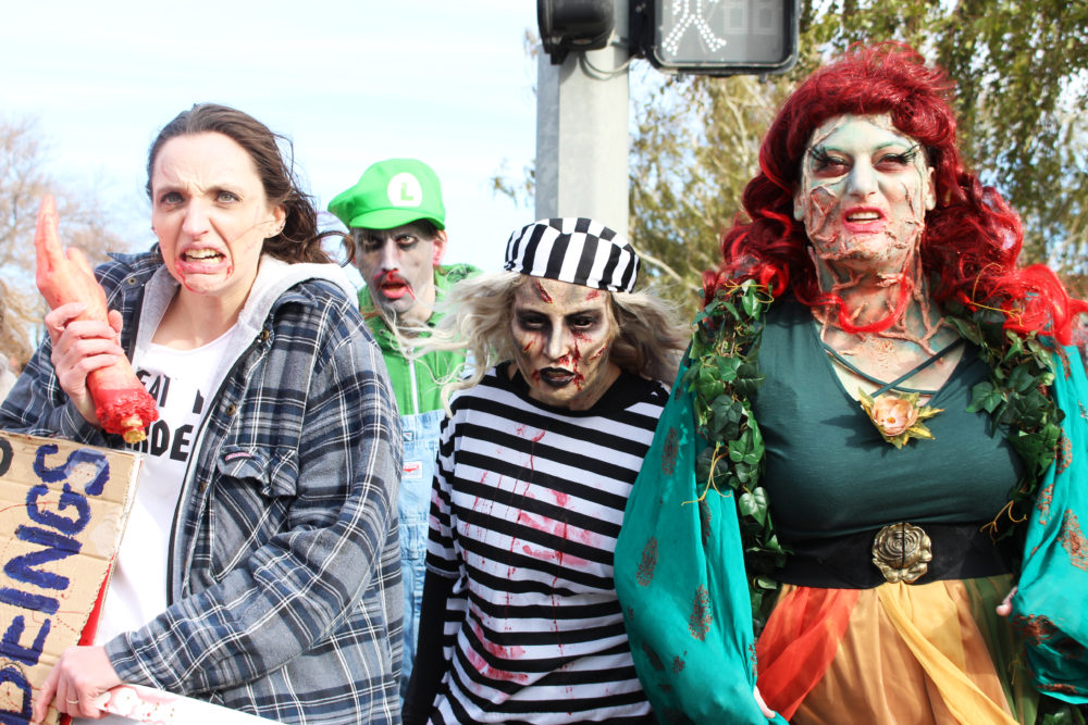 Zombies marched from Galt Gardens to City hall Saturday afternoon to celebrate the 2017 Zombie Walk.