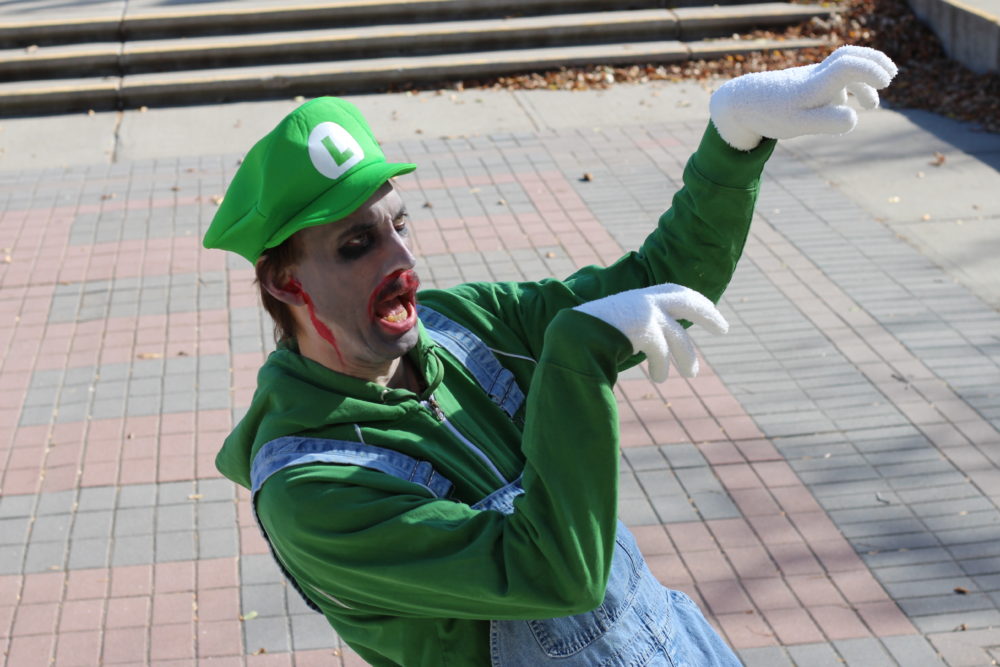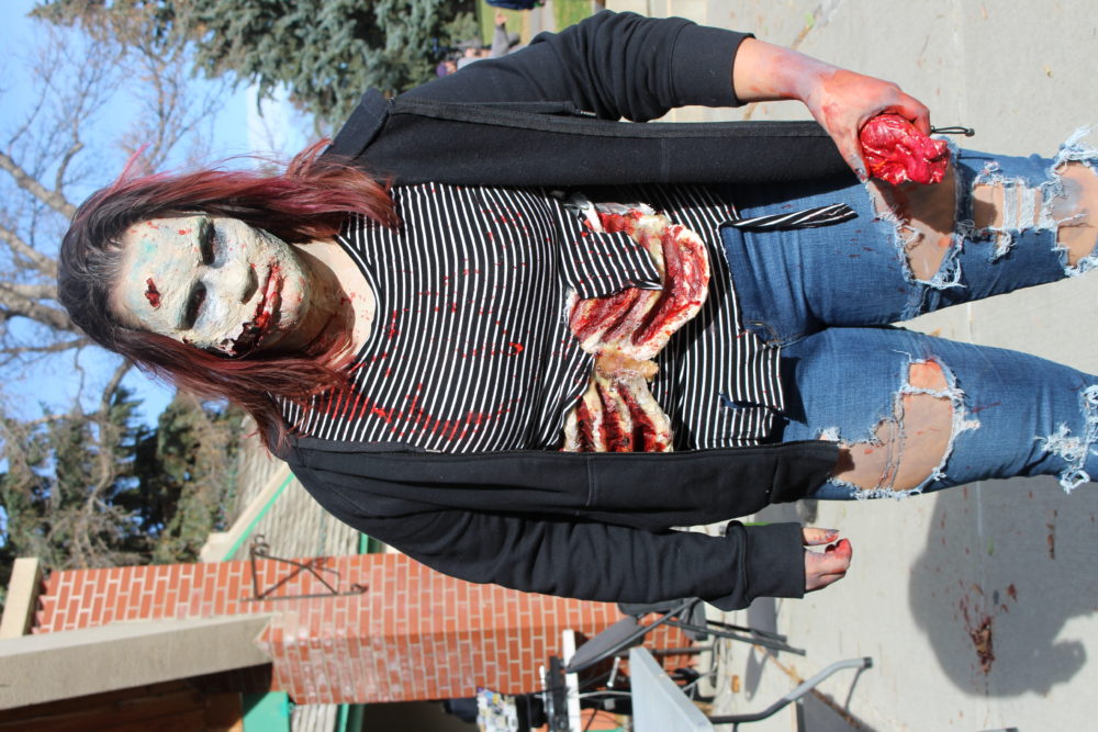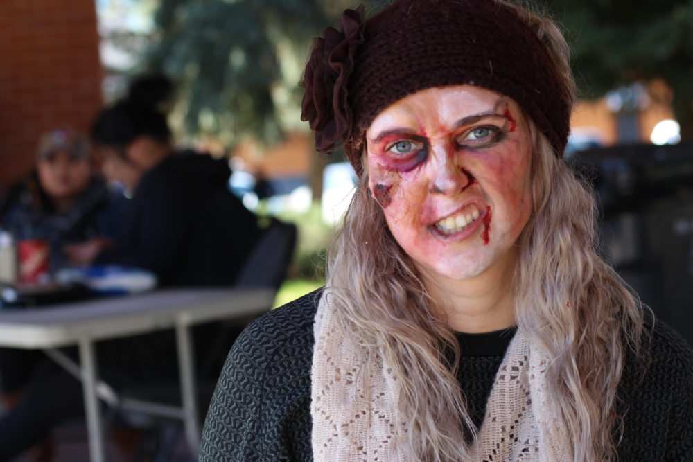 Lethbridge College employee Ashley Britton gives her best zombie snarl.