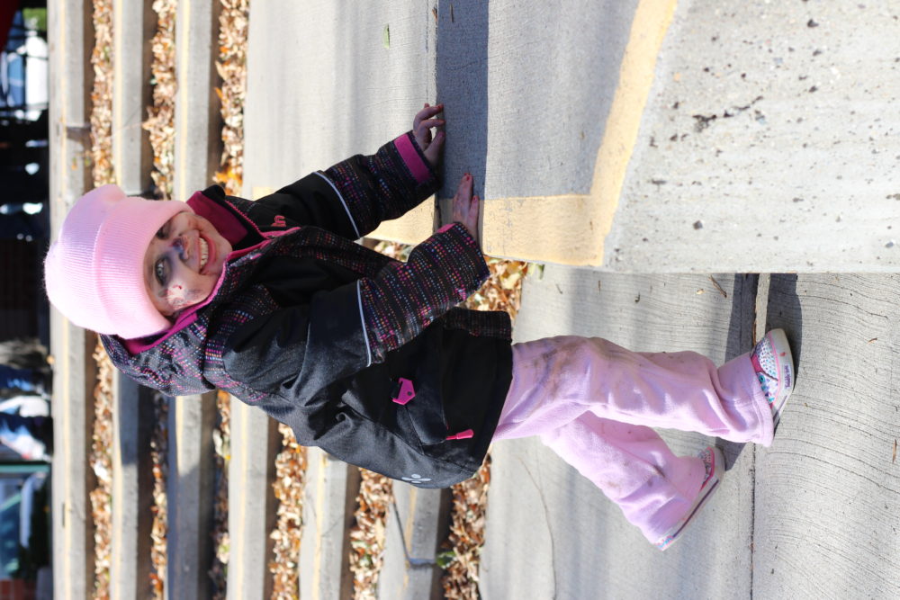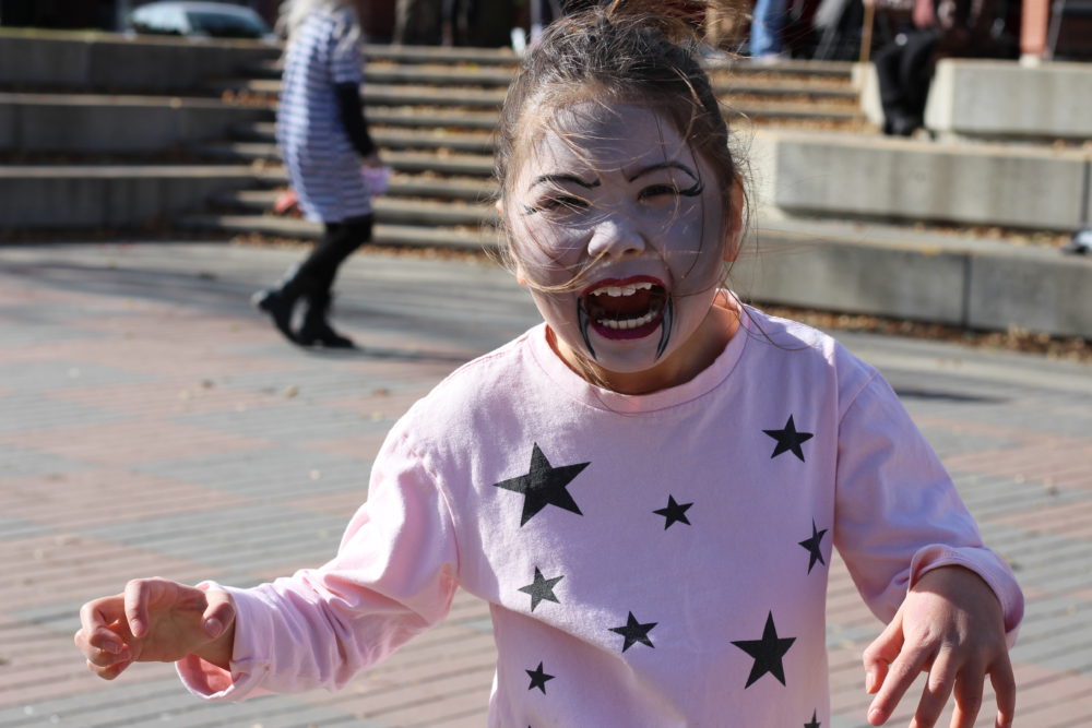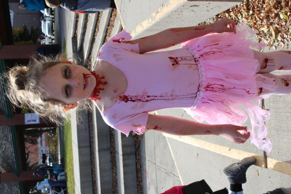 Three year-old Brooklyn Hill didn’t let her zombification stop her from smiling sweetly.