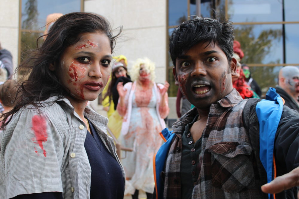 Friends came out to celebrate the 10 annual zombie walk. But you know what they say, friends don’t let friends eat bad brains.