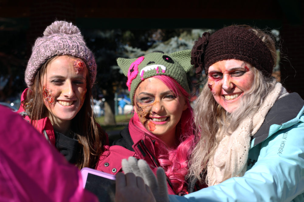 Zombie Walk organizer Katt Panic (centre) poses for a selfie with friends Ashley Britton (right) and Colby Watt, Saturday at Galt Gardens.