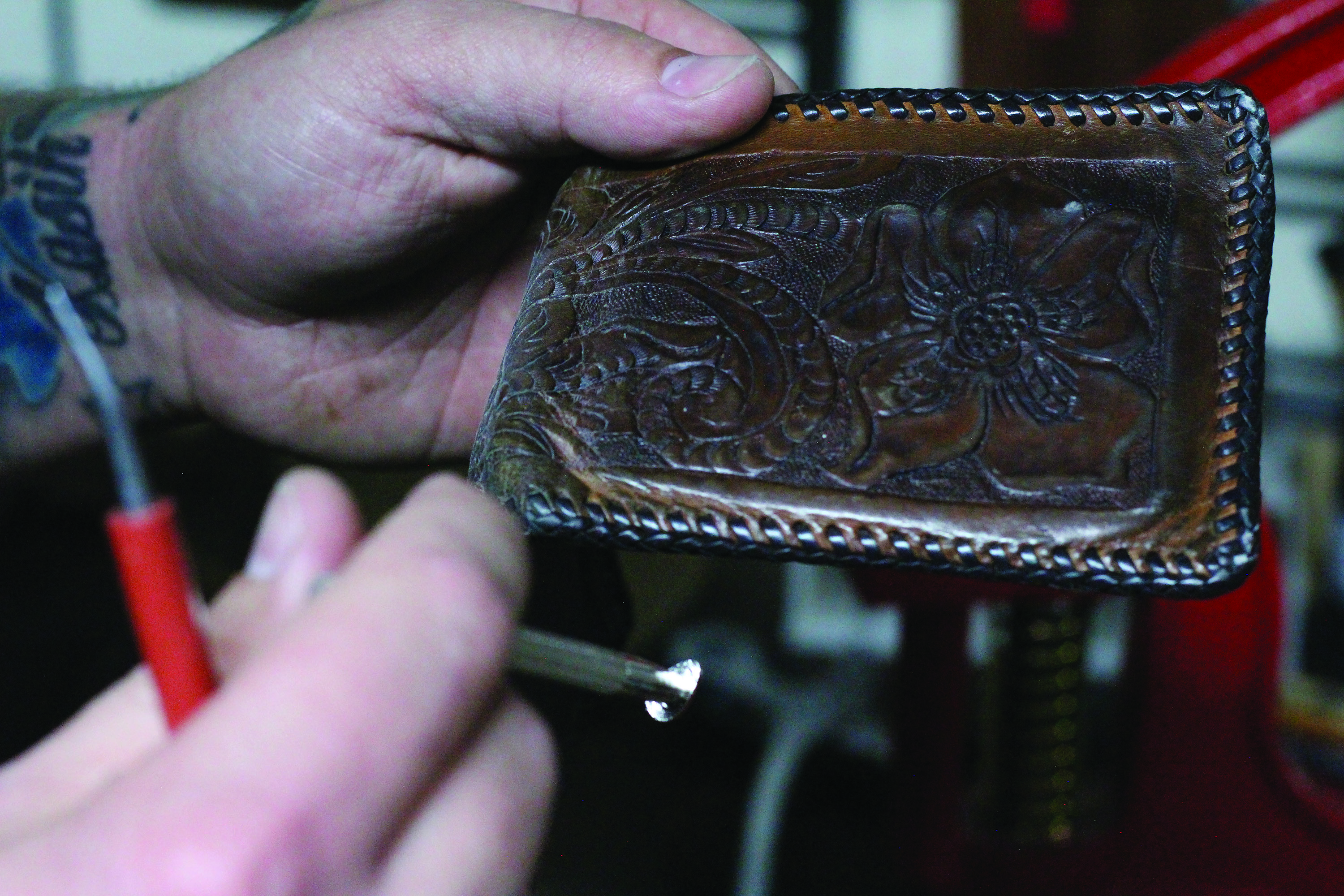 “I remember asking my dad, where does a guy just go and buy a piece of scrap leather in Lethbridge.” “He laughed and brought up this box of stuff that I guess my mother and my great grandfather used to do leather workwith, I had no idea.”