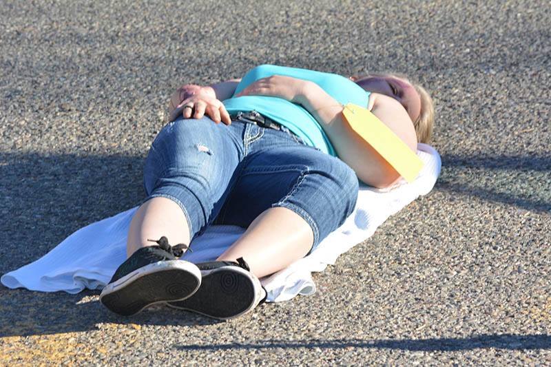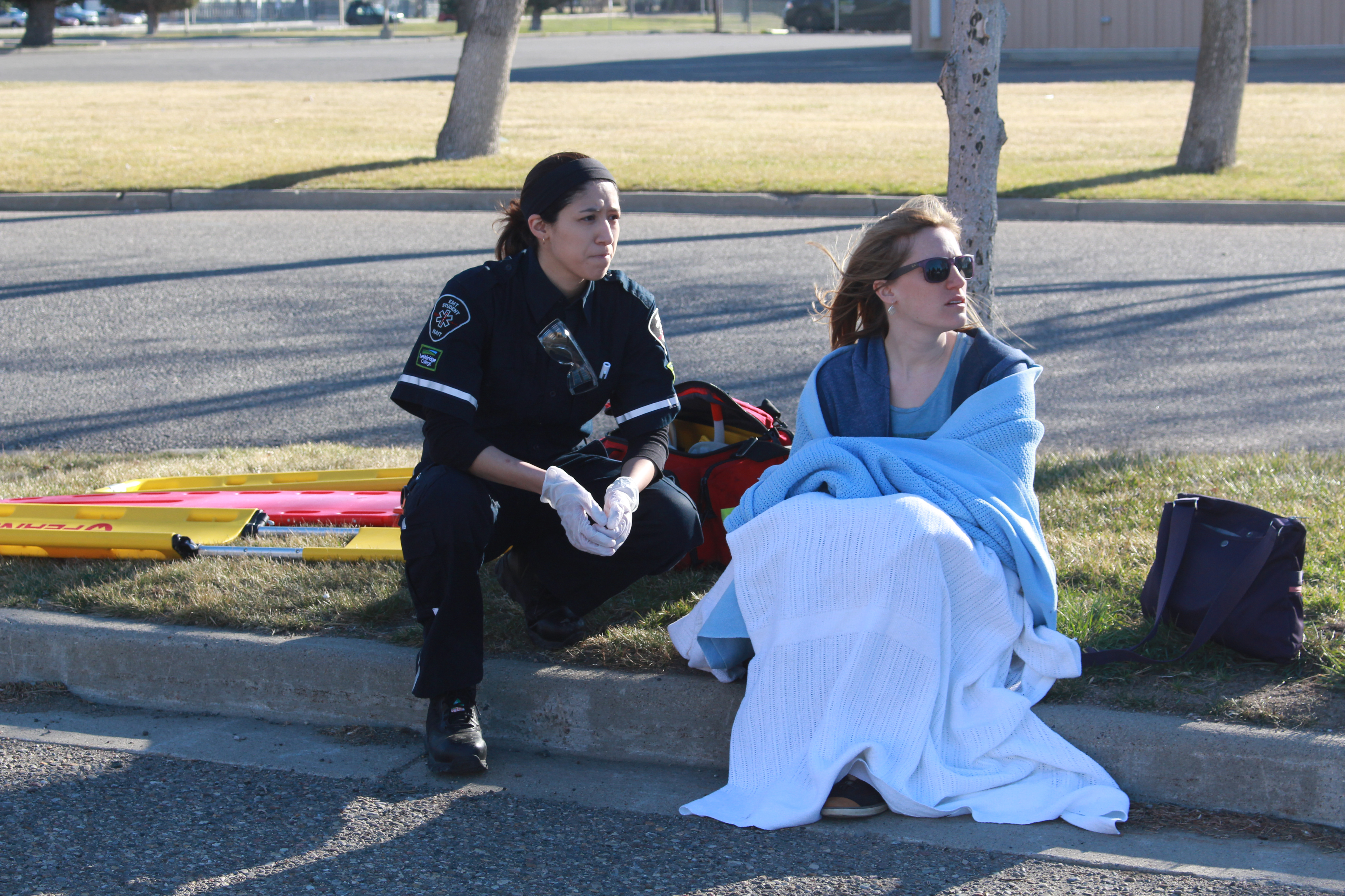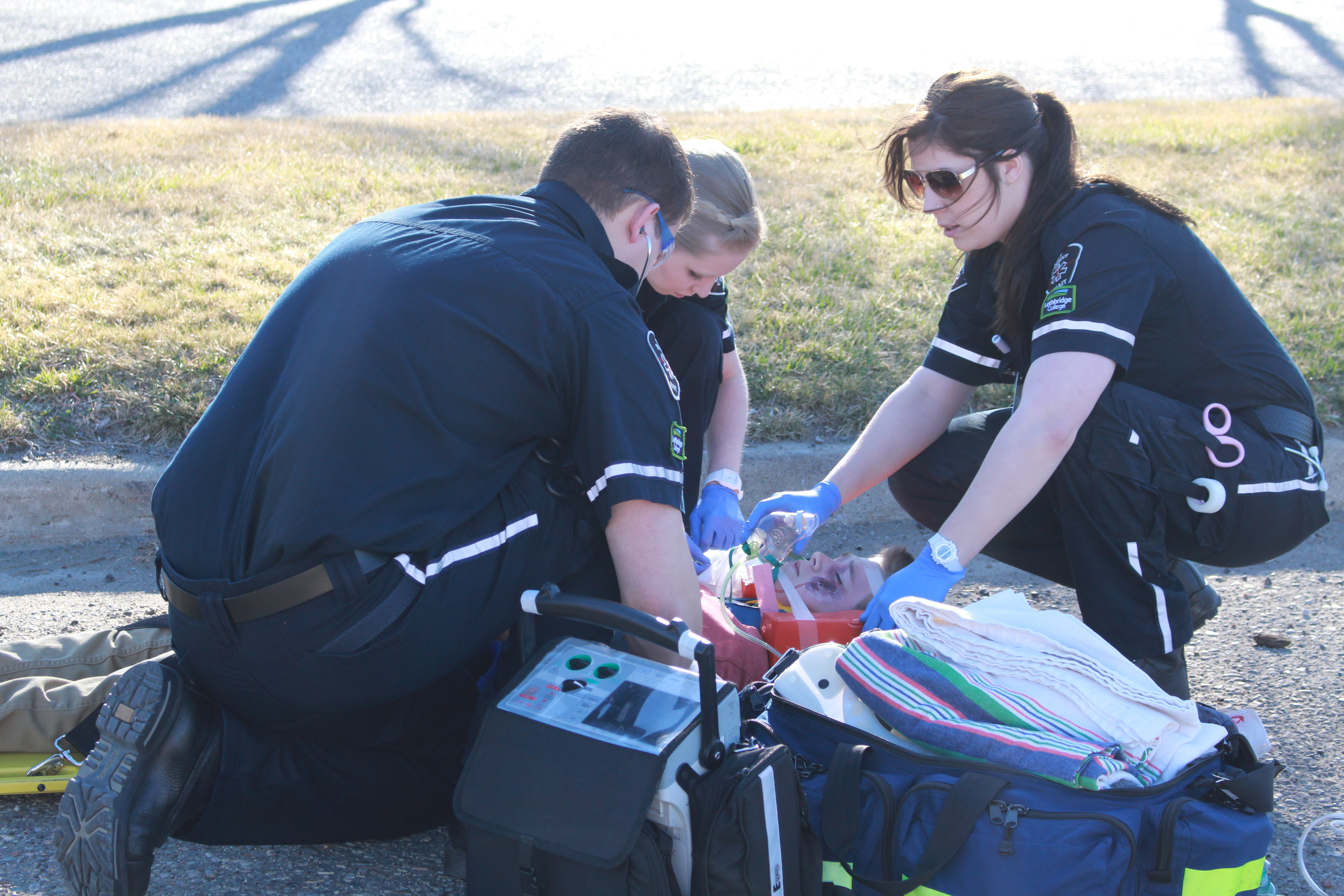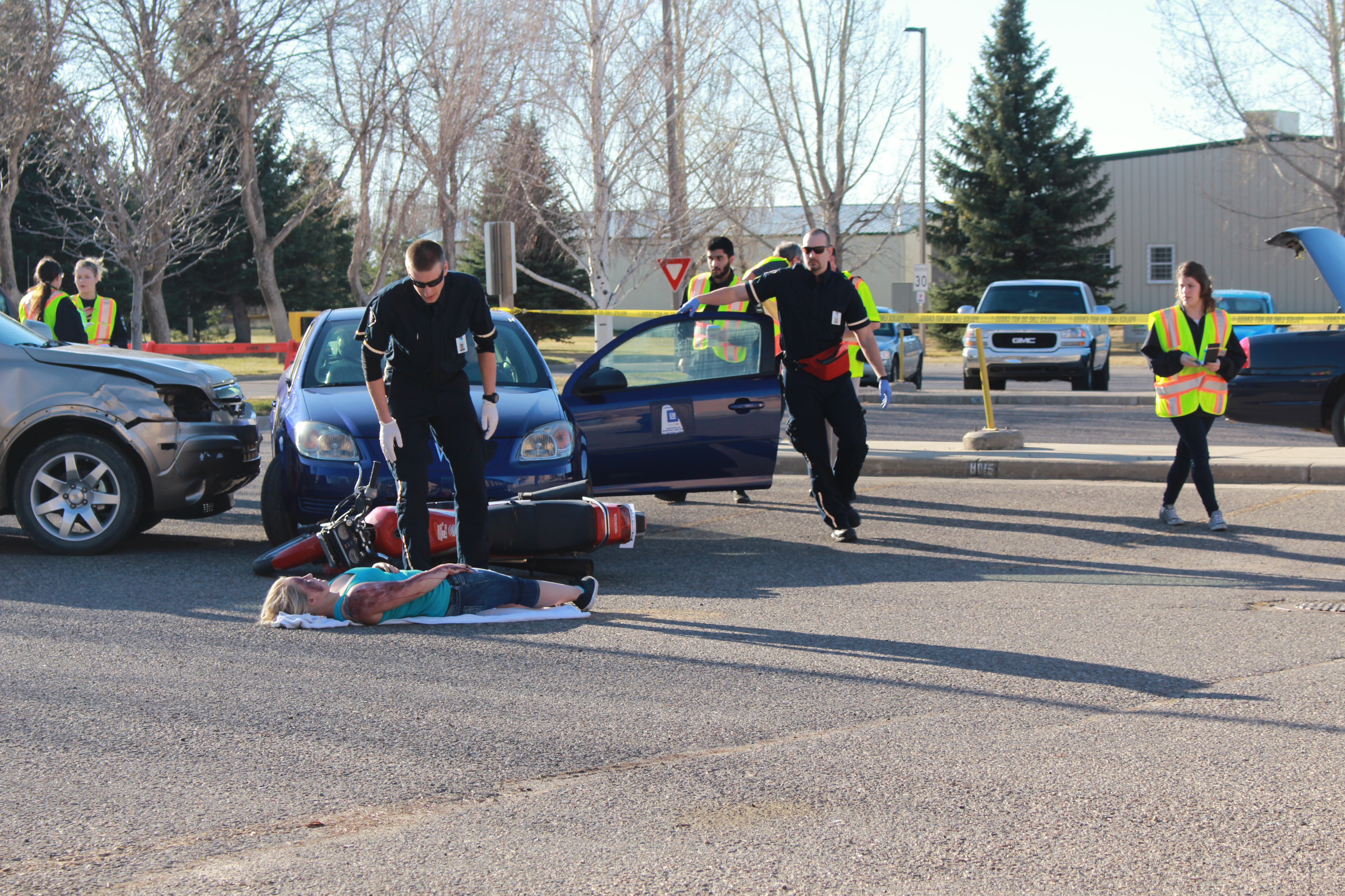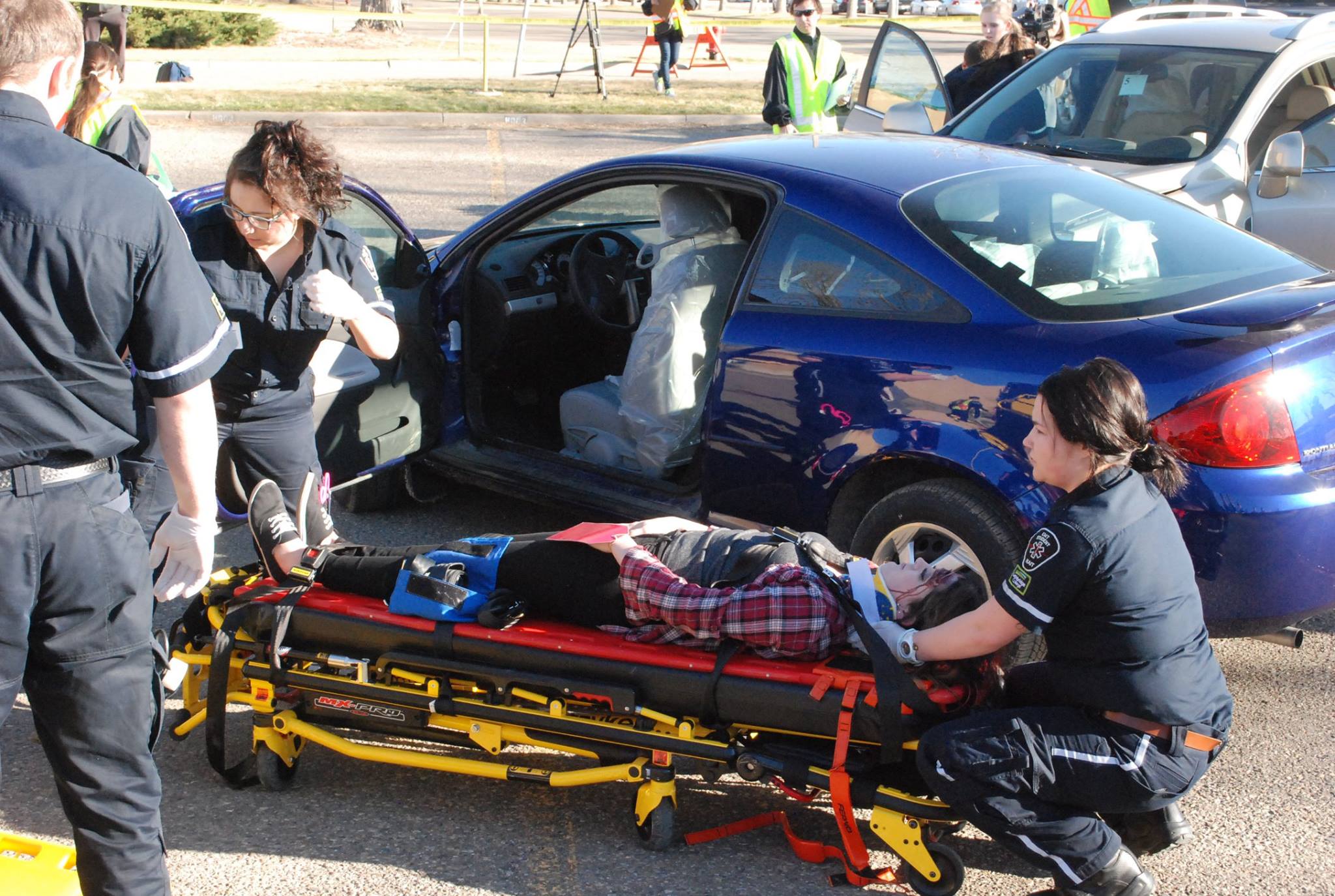 *Scenarios depicted in the following photos were part of a student training exercise at Lethbridge College on Saturday morning. No one was actually injured or involved in the described accident*